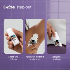 - Step 2: Apply on freshly cleaned underarms, post-shower. Swipe evenly and let the roll on get to work.