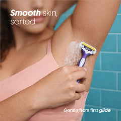 This body shaving razor is designed for an effortless glide and everyday grooming ease. Built with coated blades, a flexible safety blade, and a comfort-first grip, it removes fine hair gently without nicks, cuts, or fuss.